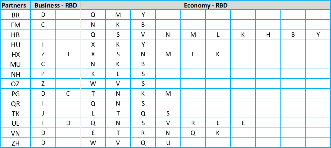 Booking class for partner airlines can be the lowest available Booking class, mentioned in the ‘Booking class hierarchy’ table, unless mapped with K6 in the table 'Booking Class Mapping'