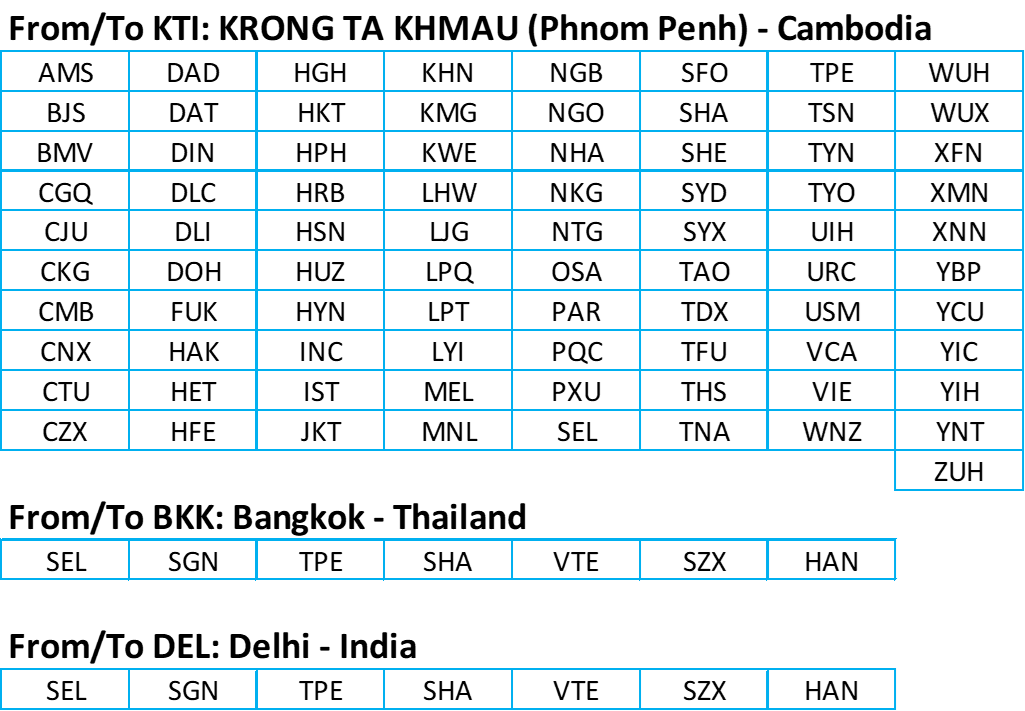 PNR must only contain Air Cambodia and partner airlines given below (Codeshare flights are excluded)